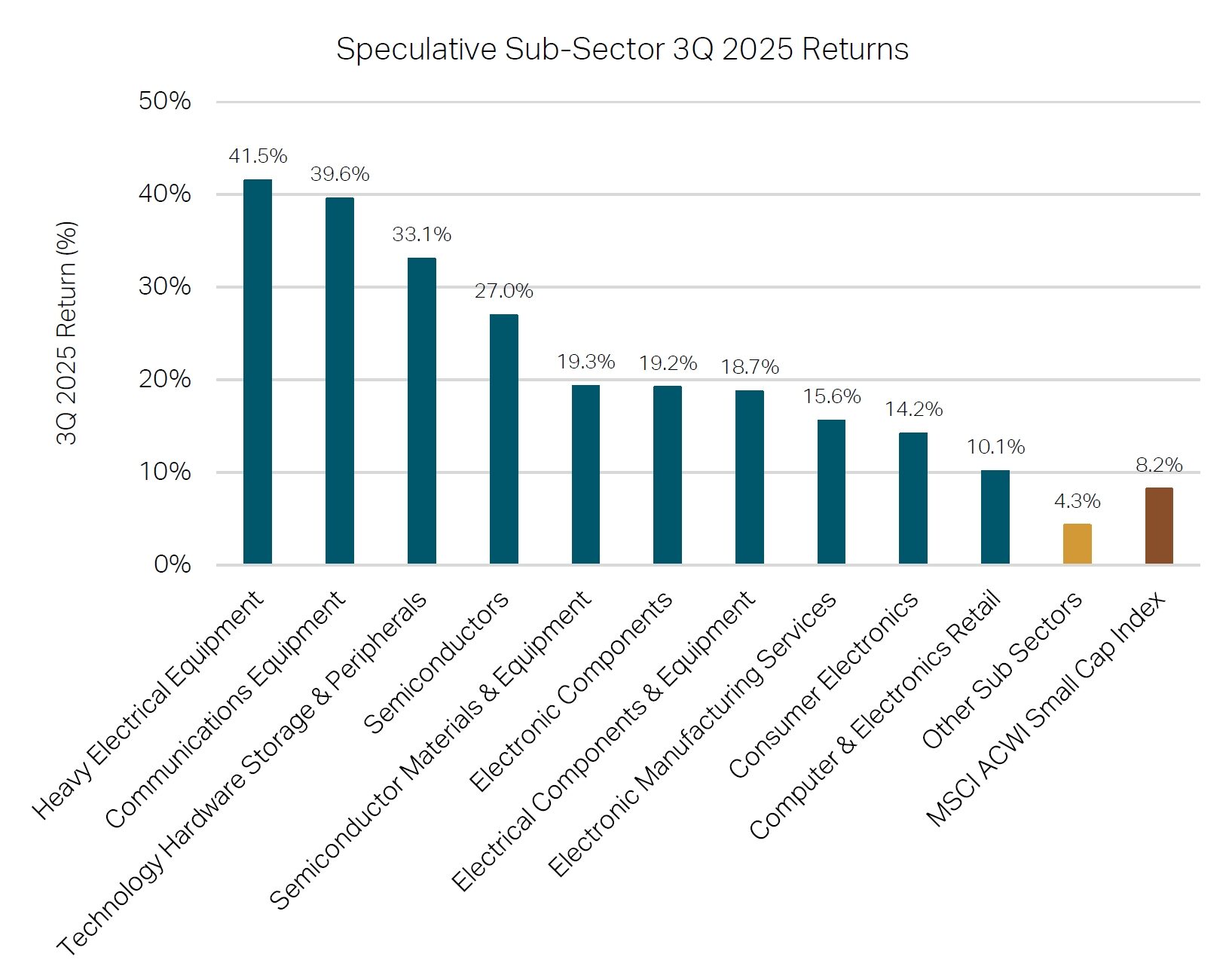 - Concentrated Performance: A small group of lower quality, speculative names accounted for nearly half of the small-cap index returns in Q3.